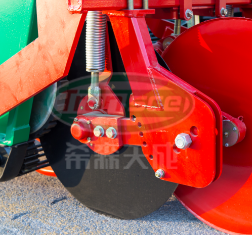 主要由圓盤(pán)刀、固定架、壓簧、調整裝置組成,圓盤(pán)刀無(wú)動(dòng)力驅動(dòng),靠摩擦力運轉,主要用來(lái)將沿薯壟兩邊的地表連同雜草切開(kāi),利于挖掘部件挖掘,同時(shí)防止機器兩側莖蔓、雜草纏繞堵塞。