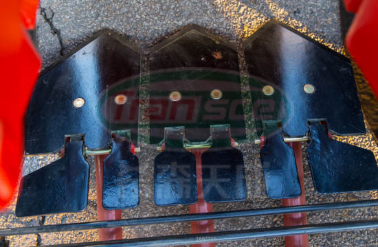 主要由刀架、刀桿、主鏟、副鏟和挖掘角度調整機構組成,用來(lái)將馬鈴薯連同土壤整幅寬挖起,同時(shí)副鏟可以防止石頭等硬物損壞輸送鏈。