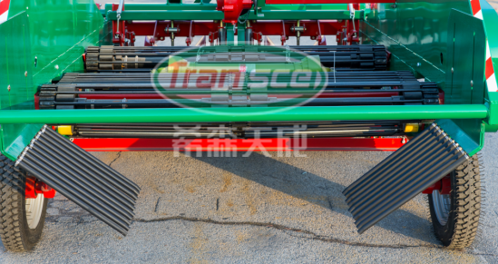 分離清選后的馬鈴薯輸送到機器的后方,通過(guò)調整集條擋板的寬度,將馬鈴薯鋪放在地面上,以便撿拾。