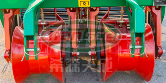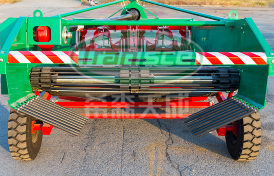 分離清選后的馬鈴薯輸送到機器的后方,通過(guò)調整集條擋板的寬度,將馬鈴薯鋪放在地面上,以便撿拾。