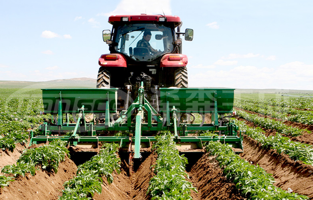 馬鈴薯中耕起壟施肥機是用于馬鈴薯中耕培土的農業(yè)機械,可完成松土、除草、筑壟、追肥等作業(yè),同時(shí)兼有提高地溫、保墑作用。該種犁體采用新型的犁體曲面結構,非常適合北方寒冷地區的起壟作業(yè),尤其適合塊莖類(lèi)作物的中耕作業(yè),壟體截面上小下大中間外鼓,壟體外形光滑整齊,單壟儲存塊莖能力增大,該壟體具有抗旱、保墑、保溫、增產(chǎn)等效果。犁壁采用獨特的犁體曲面設計,使犁體的受力面更合理,作業(yè)阻力更小,雙側犁壁寬窄可調,可控制壟體大小,該犁體的犁壁下部采用內收的形式,使得中耕作業(yè)過(guò)程中塊莖不會(huì )被劃傷,同時(shí)壟體覆蓋嚴密,使塊莖不易露出地面,對塊莖的生長(cháng)發(fā)育極為有利。