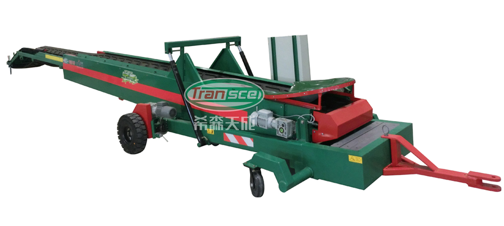 5SD-40馬鈴薯堆垛機主要由可左右擺動(dòng)的配重底座、主機架、伸縮架、輸送帶驅動(dòng)裝置、液壓系統、電氣控制系統組成。整機通過(guò)牽引設備移動(dòng)至庫房或田間作業(yè)區,接通電源,通過(guò)操作手柄對堆垛機進(jìn)行短距離移動(dòng)和方位調整,使堆垛機處于工作位置。選擇好工作位置的電源端口并連接,首先控制液壓系統使底盤(pán)著(zhù)地,調節左右地輪使處于可繞底座支點(diǎn)搖擺狀態(tài),然后根據庫房空間伸長(cháng)伸縮架至合適位置,并將出料口調節至合適高度。當操作手柄的“手動(dòng)/自動(dòng)”旋鈕旋至“自動(dòng)”,并在左右輪胎行程開(kāi)關(guān)附近設置好限位物體后,可使堆垛機實(shí)現左右自動(dòng)搖擺,啟動(dòng)輸送電機,整機處于待工作狀態(tài)。馬鈴薯通過(guò)清選和輸送設備運送過(guò)來(lái)之后,落入堆垛機的接收料斗,通過(guò)輸送帶將馬鈴薯堆放至目標位置,操作者根據馬鈴薯堆放的情況切換“手動(dòng)”“自動(dòng)”狀態(tài),調整伸縮架長(cháng)度和出料口高度。當伸縮架收縮至最短或最長(cháng)不能滿(mǎn)足堆放要求時(shí),需根據堆放情況,調節堆垛機和其相連設備的工作位置,并重復以上操作,直至整個(gè)倉庫堆放完畢。